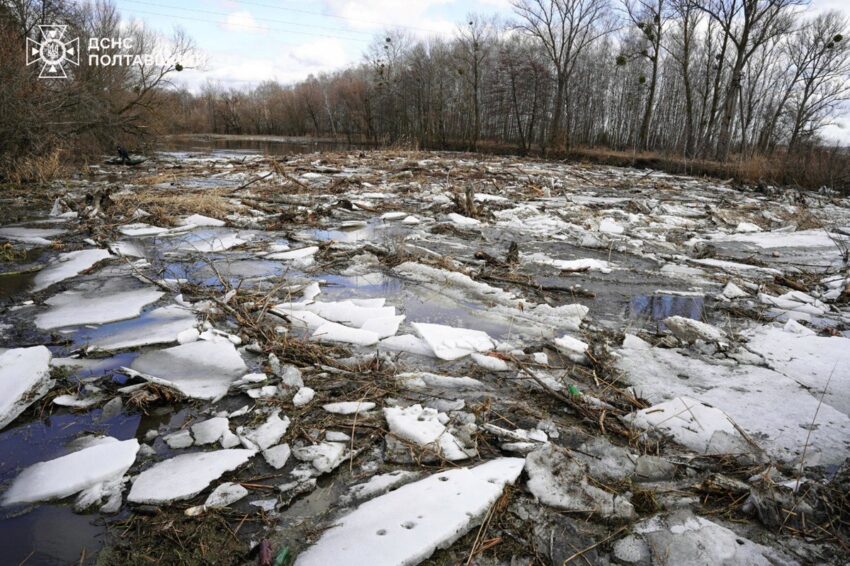 На річці Ворскла, що у селі Старі Санжари Полтавської області утворився льодовий затор із деревною масою, рятувальники ліквідовують наслідки. Про це у понеділок, 9 березня, повідомили у ДСНС.
