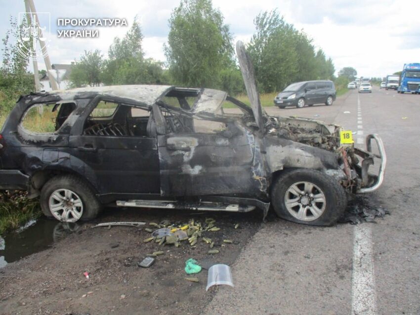 Як зазначається, аварія сталася 31 липня 2023 року у селі Городець на Рівненщині. 39-річна водійка з Київщини на автомобілі Landmark, об’їжджаючи просідання дорожнього покриття, втратила керування автомобілем – машина перекинулася та загорілася.