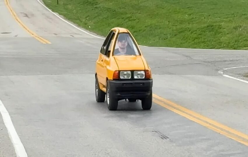 У США створили незвичайний транспортний засіб – надзвичайно вузький автомобіль, який за габаритами нагадує мотоцикл. Автором проєкту став блогер Тайлер Фівер, який показав процес переробки на своєму YouTube-каналі Prop Department.